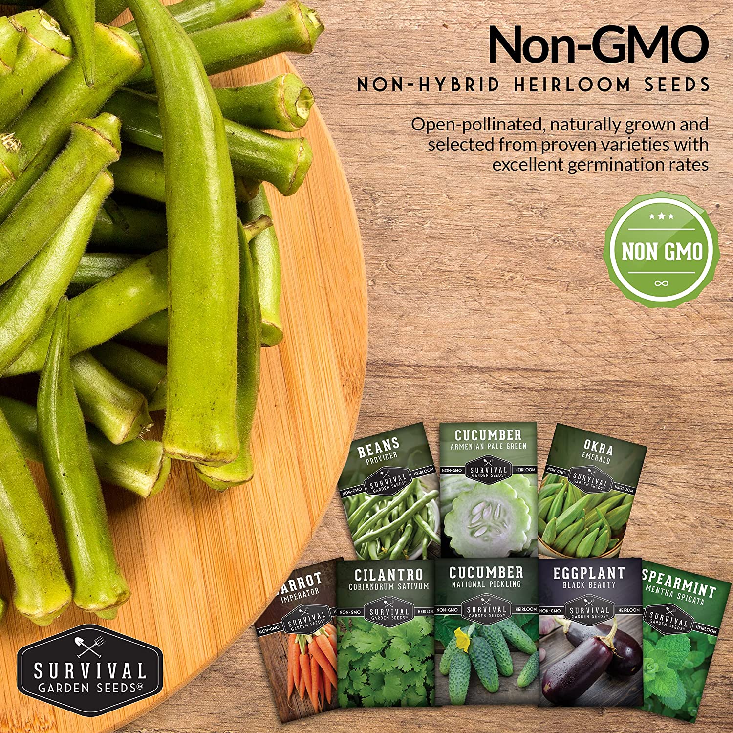 Survival Garden Seeds Indian Vegetable Collection 8 Packs Eggplant Okra Green Bean Cilantro Armenian Pickling Cucumber Carrot Spearmint Full Sun Walmart Com